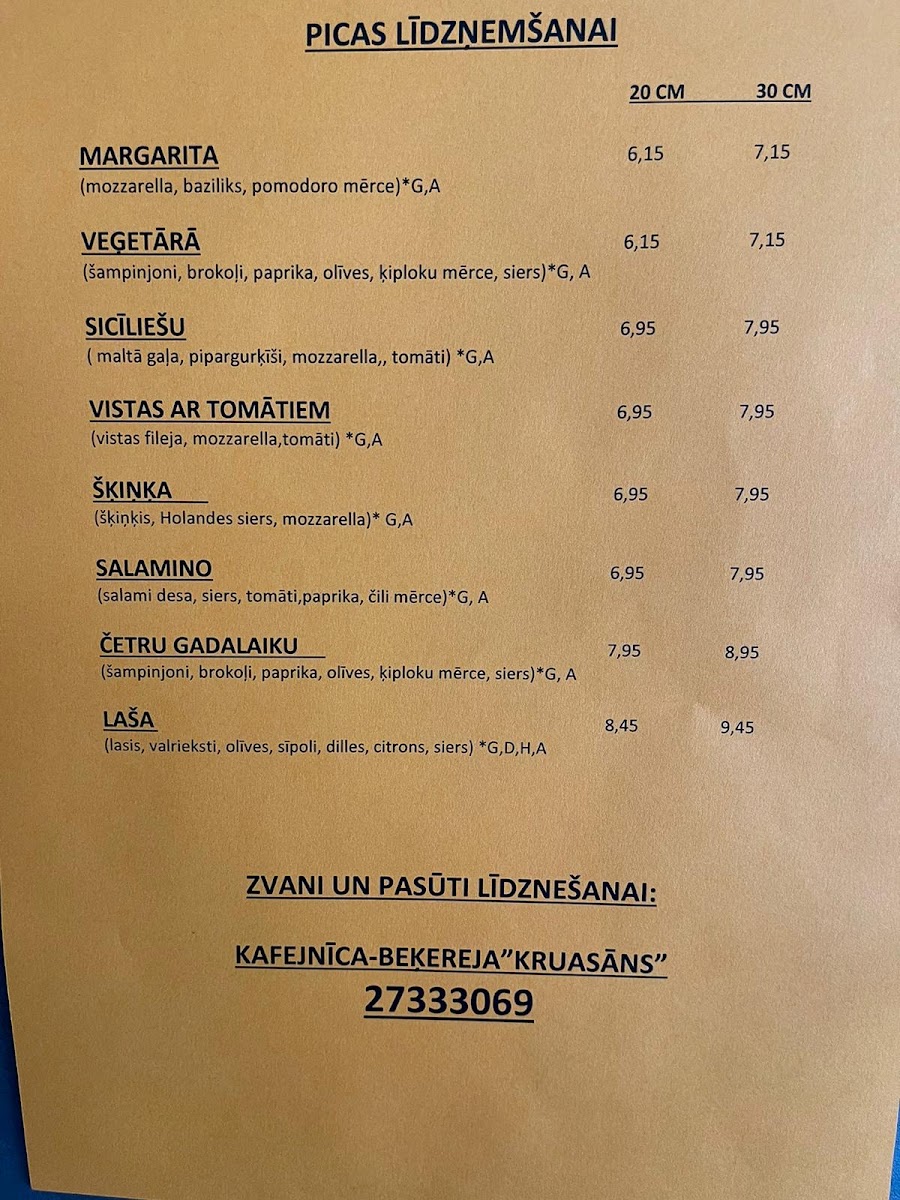 Kafejnīca – konditoreja “Kanēlis” Menu